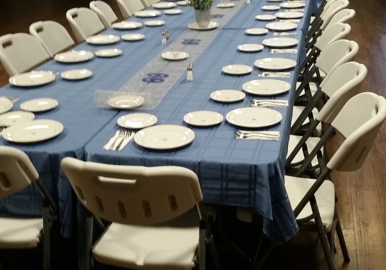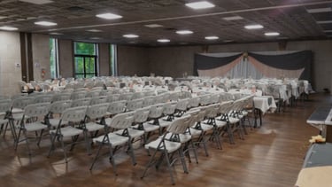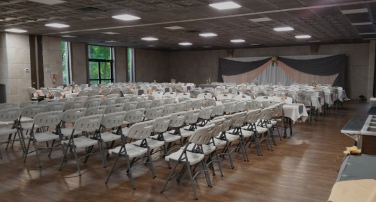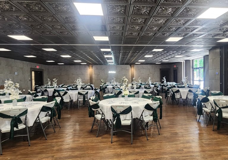 Our 75'x50' hall accommodates up to 300 guests for unforgettable gatherings and celebrations.