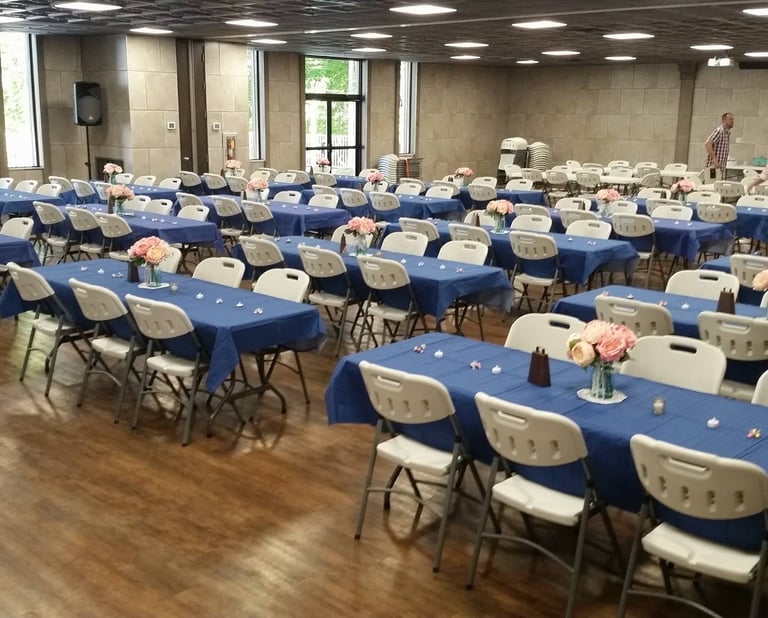 The Ashlar offers a stunning venue for your events in historic Tecumseh, Michigan. Our spacious hall accommodates up to 300 guests, complemented by a beautiful deck overlooking Red Mill Pond, perfect for memorable gatherings and celebrations.
